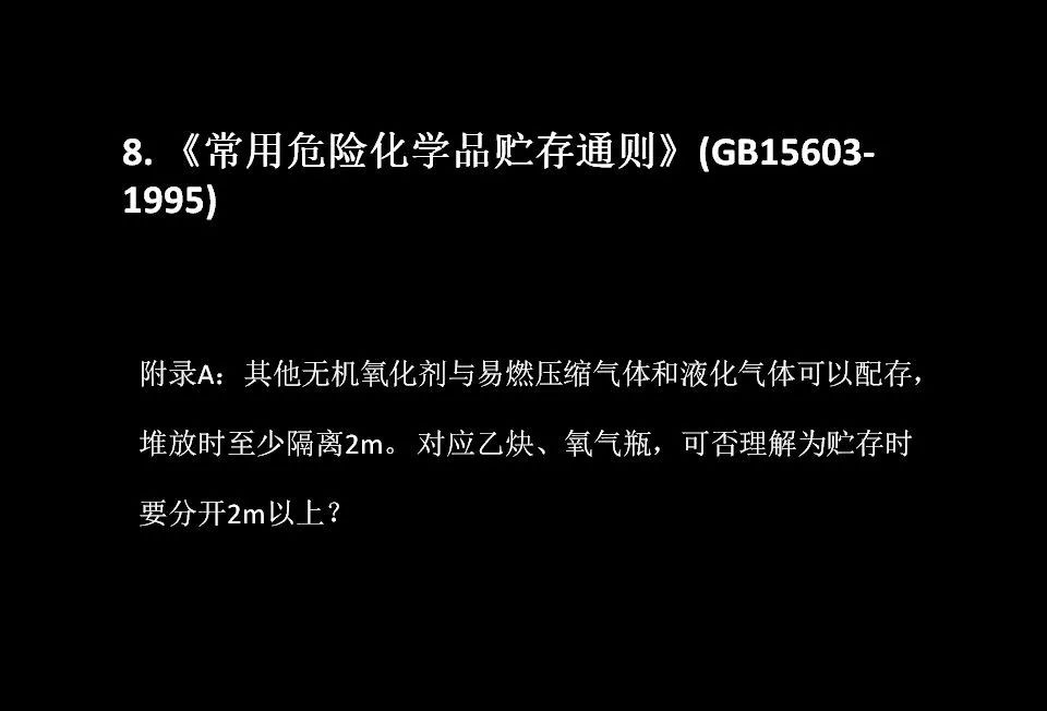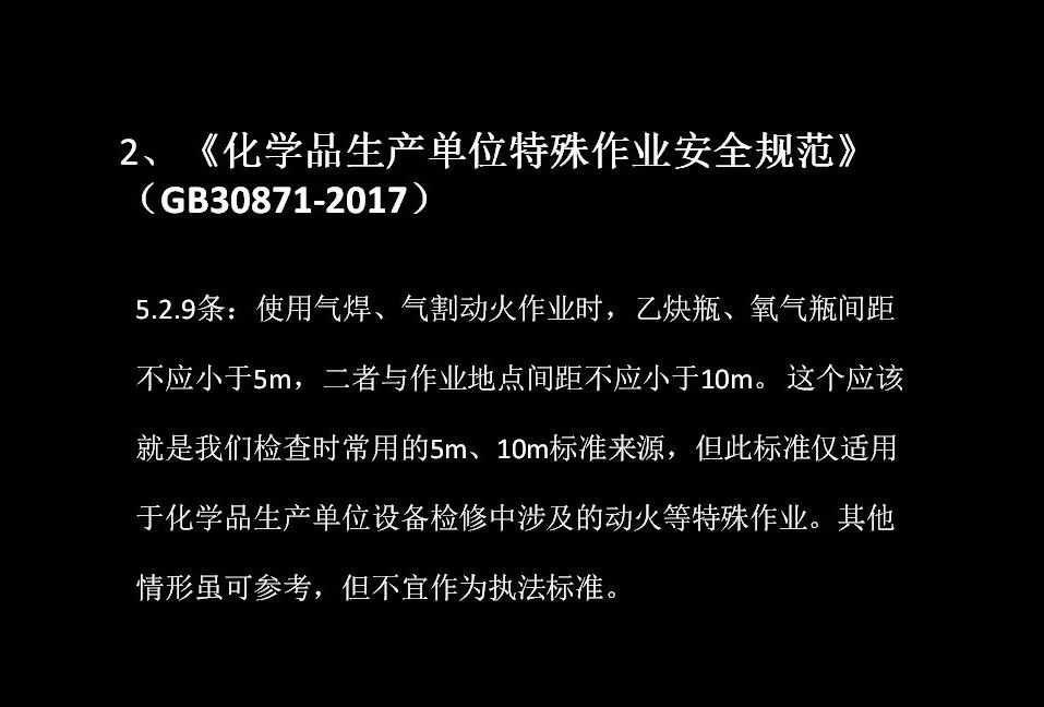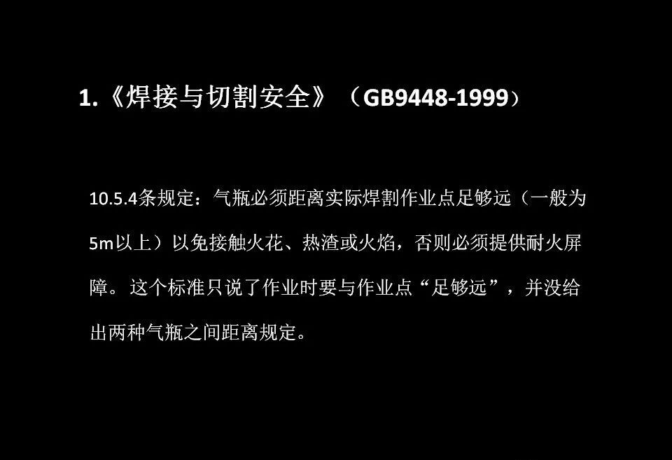 乙炔、氧氣瓶存放距離到底應(yīng)為多少才安全?關(guān)于這個(gè)問(wèn)題的答案網(wǎng)上和公眾號(hào)里眾說(shuō)紛紜,作為一個(gè)追求用標(biāo)準(zhǔn)說(shuō)話的安全人,今天對(duì)這個(gè)問(wèn)題重新進(jìn)行了研究,查到現(xiàn)行以下標(biāo)準(zhǔn):